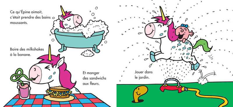 Madame Surprise et monsieur Farfelu ont découvert un bébé licorne. Mais Épine est très coquine et adore faire des bêtises ! Et pour cela, elle n’hésite pas à se servir de sa magie, quitte à semer la zizanie…